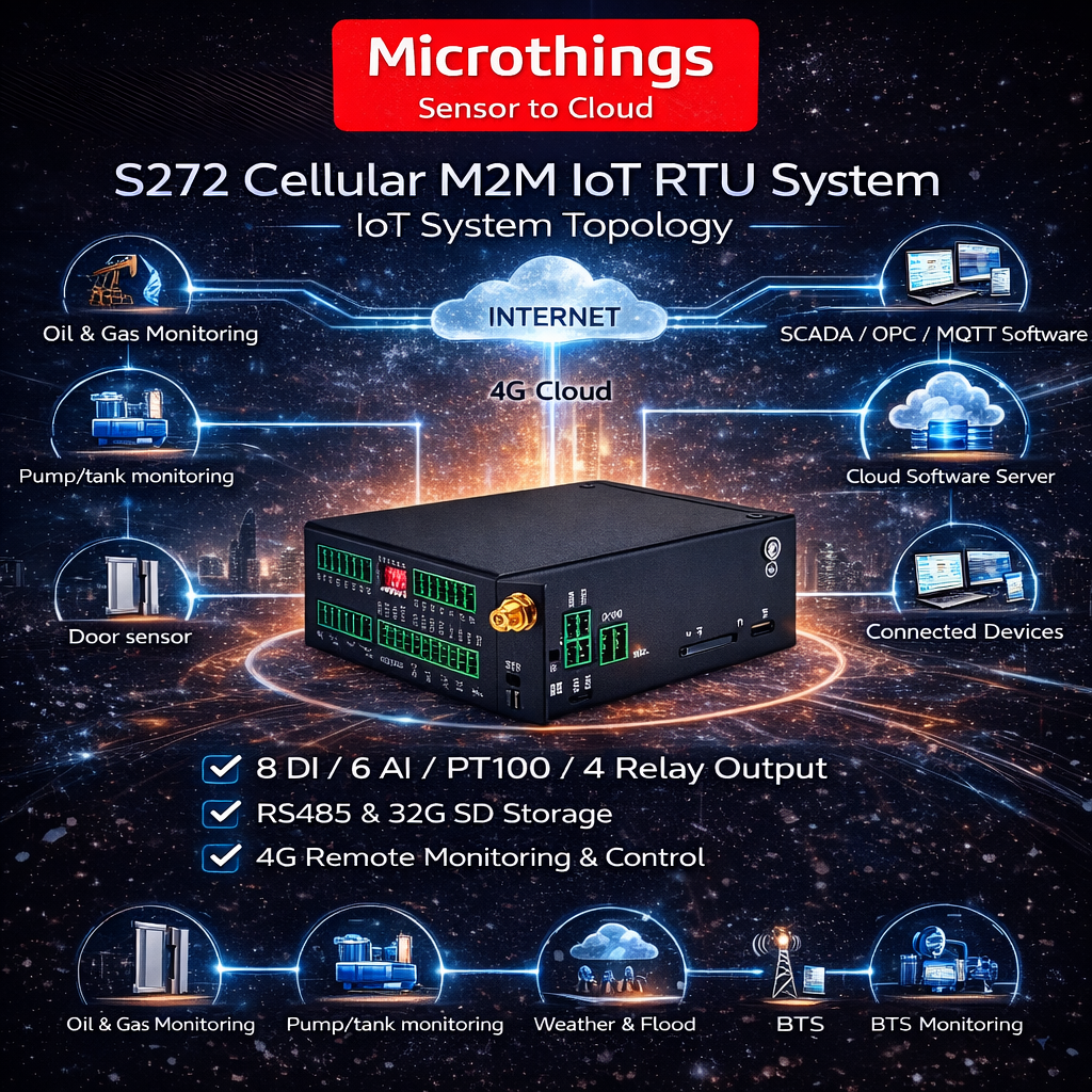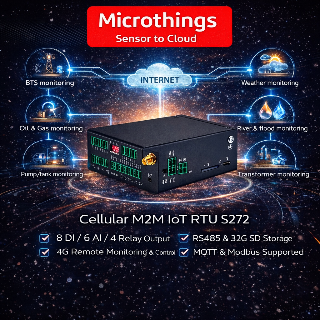Perangkat ini sangat cocok untuk kebutuhan monitoring infrastruktur, energi, utilitas, keamanan, dan otomasi industri, terutama pada lokasi yang membutuhkan konektivitas seluler 4G dan kontrol jarak jauh yang andal. Selain itu, S272 mendukung integrasi dengan SCADA, HMI, DSC, PLC, dan Modbus slave devices, sehingga memudahkan implementasi sistem pemantauan dan kontrol terpadu.