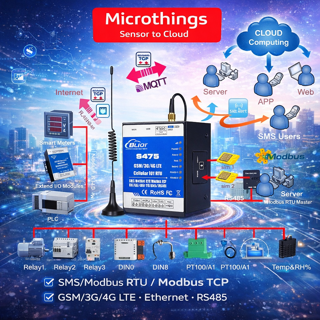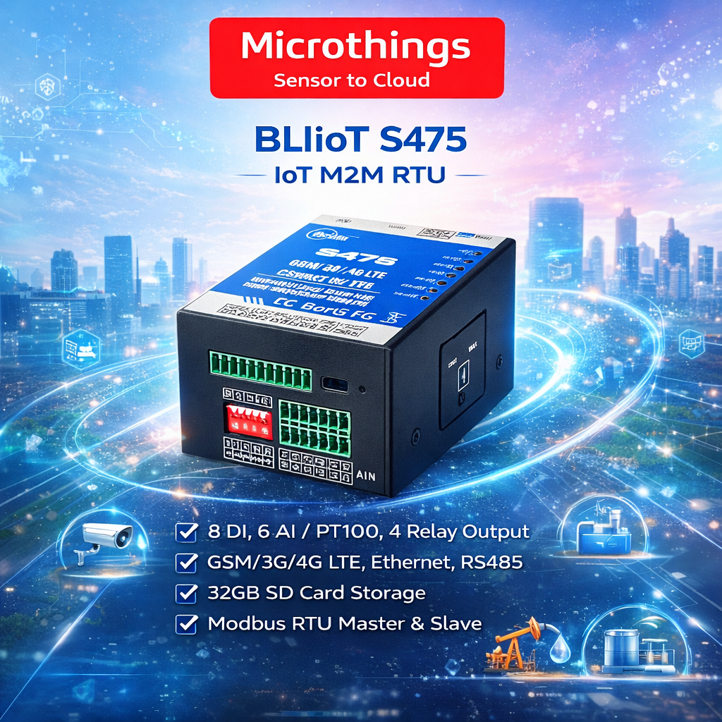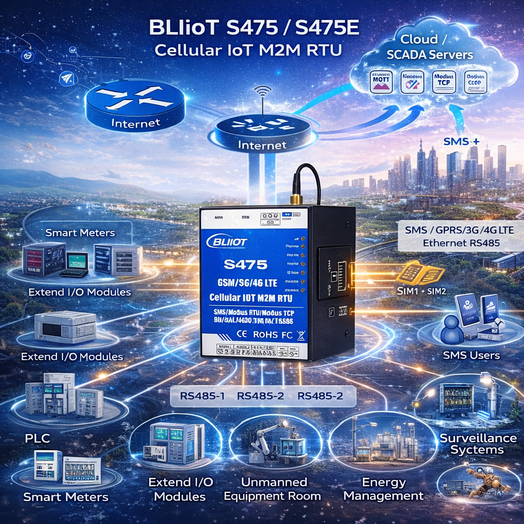 Cellular IoT RTU S475 / S475EÂ adalah industrial programmable Remote Terminal Unit yang dirancang untuk kebutuhan remote monitoring, data acquisition, alarm, dan kontrol otomatis di lingkungan industri. Perangkat ini menawarkan keandalan tinggi, stabilitas tinggi, dan arsitektur yang cocok untuk aplikasi lapangan yang membutuhkan pemantauan I/O, komunikasi Modbus, dan integrasi ke cloud, server, atau SCADA.