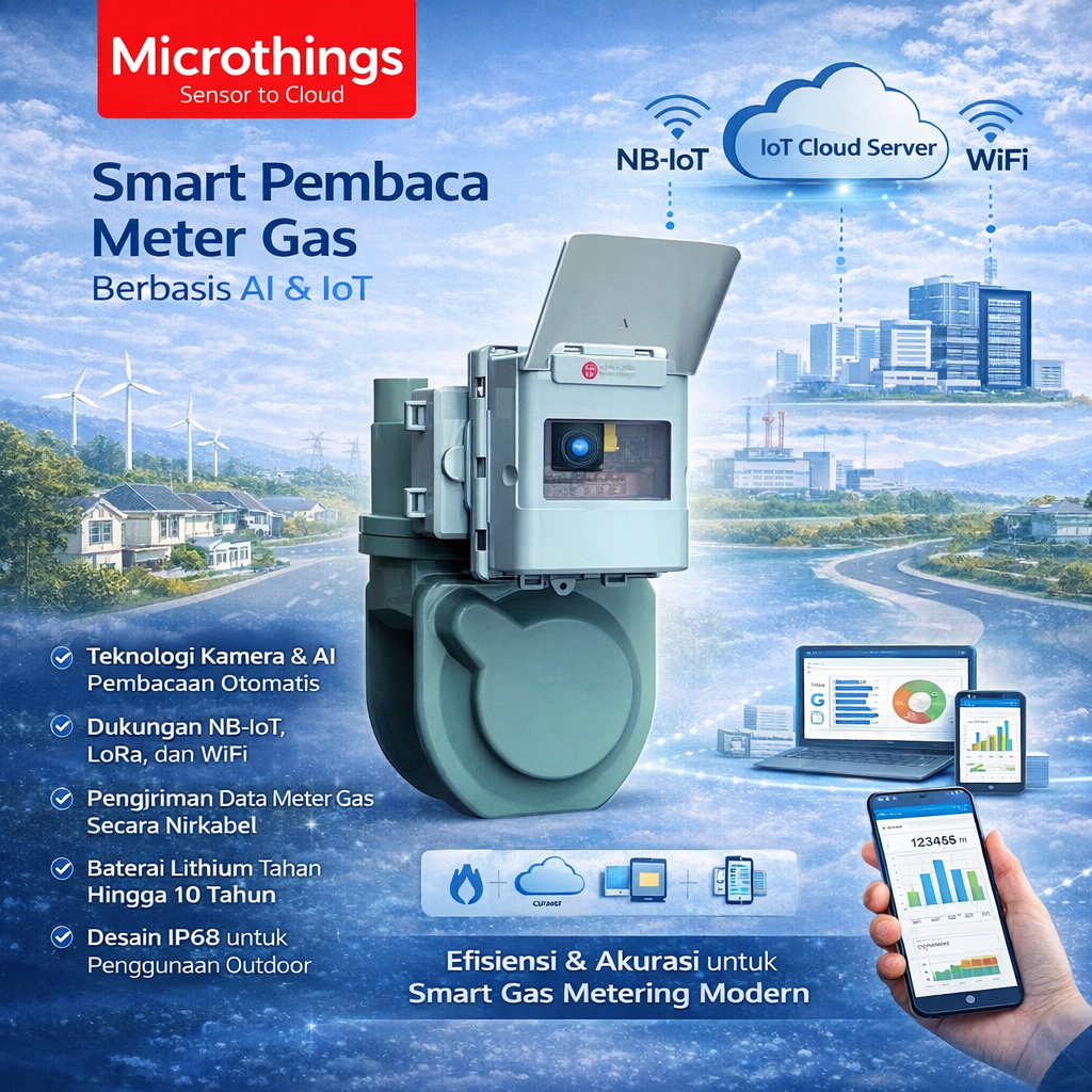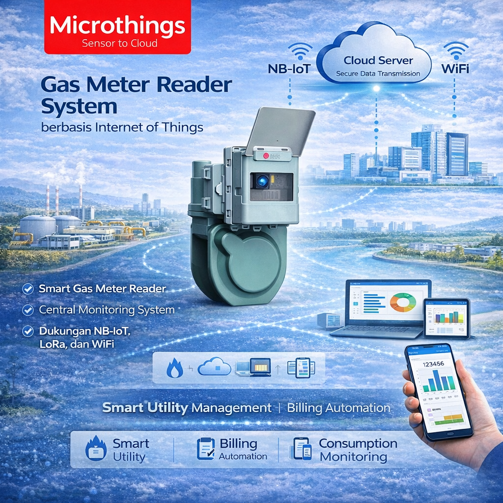 Hasil pembacaan kemudian dikirim secara nirkabel ke sistem pusat melalui jaringan NB-IoT, LoRa, dan WiFi, sehingga proses monitoring dan pengumpulan data meter gas dapat dilakukan secara lebih efisien, cepat, dan terpusat. Solusi ini sangat cocok untuk mendukung digitalisasi pembacaan meter gas tanpa perlu mengganti meter yang sudah ada.