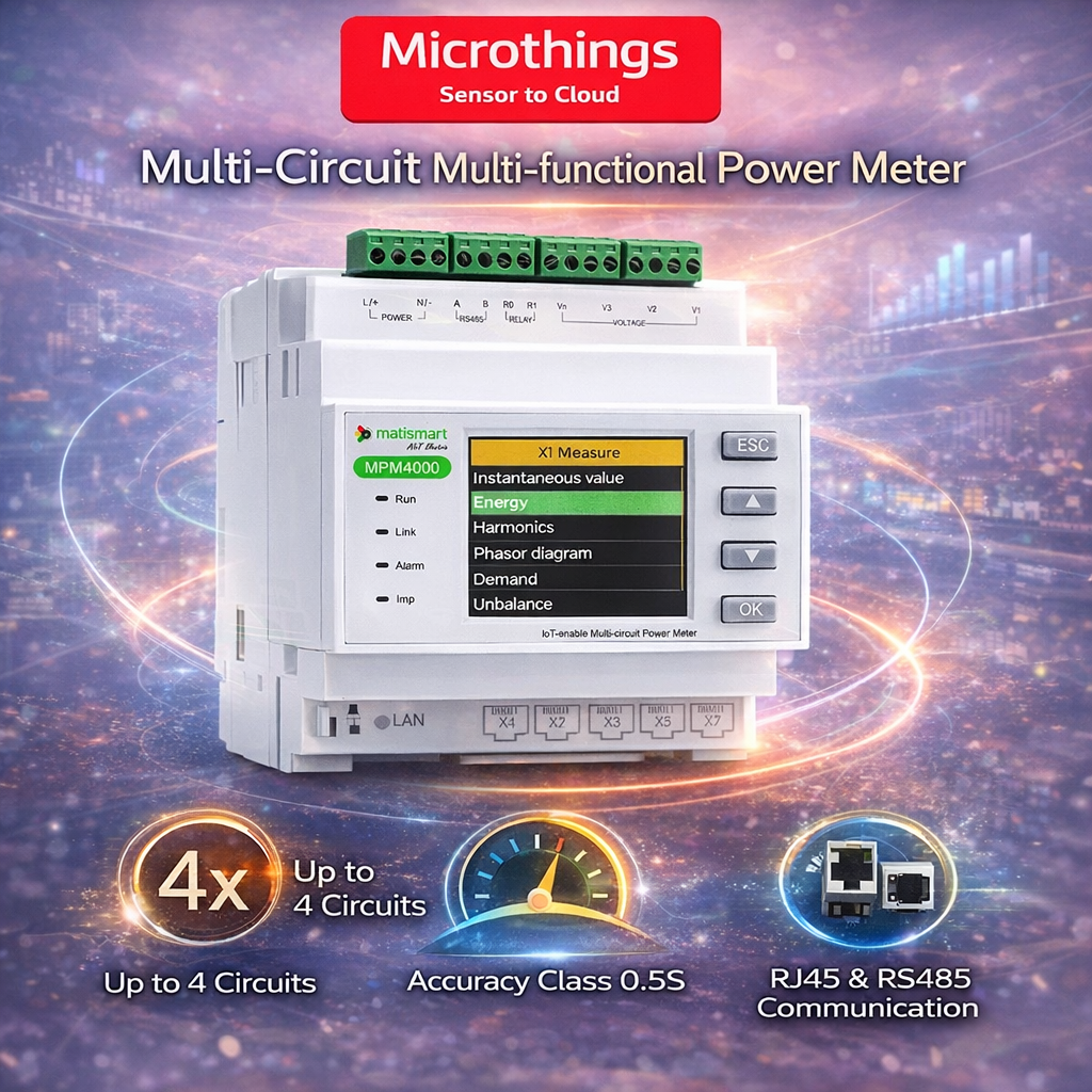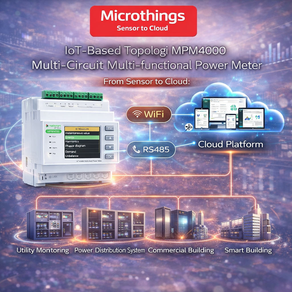Multi Circuit Multi-functional Power Meter MPM4000 adalah meter daya multi-sirkuit yang dirancang untuk kebutuhan monitoring distribusi daya pada lingkungan berdensitas tinggi seperti data center, smart building, dan sistem manajemen energi modern. Dalam satu unit yang hemat ruang, MPM4000 mampu melakukan pengukuran dan monitoring hingga 4 sirkuit tiga fasa, sehingga cocok untuk panel yang membutuhkan visibilitas tinggi tanpa menambah banyak perangkat.