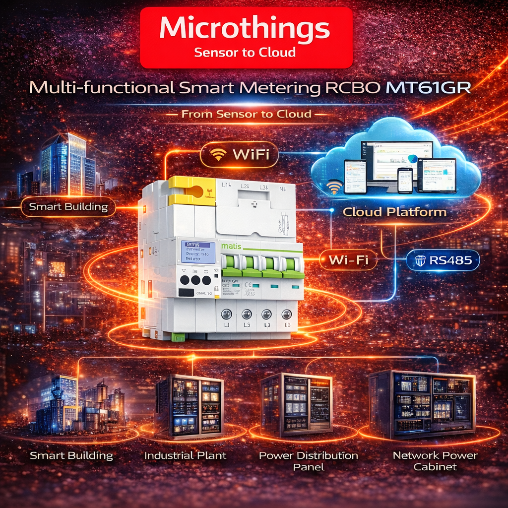 Multi-functional Smart Metering RCBO MT61GR adalah perangkat proteksi pintar yang menggabungkan fungsi metering, breaker, dan recloser dalam satu unit untuk aplikasi IoT yang menuntut keselamatan listrik dan visibilitas sistem secara real-time. Produk ini dirancang untuk memberikan perlindungan menyeluruh terhadap overload, short circuit, dan earth leakage, sekaligus menyediakan data konsumsi energi yang akurat untuk kebutuhan monitoring dan control.