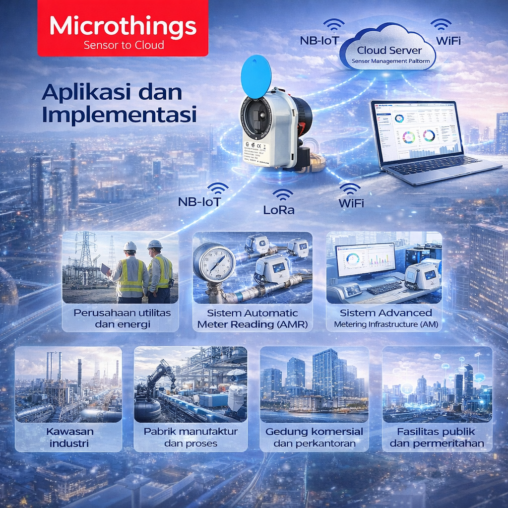 Hasil pembacaan kemudian dikirim secara nirkabel ke sistem pusat melalui jaringan NB-IoT, LoRa, dan WiFi, sehingga proses pemantauan tekanan menjadi lebih efisien, cepat, dan minim kesalahan manual. Teknologi ini memungkinkan pengelolaan data pressure gauge dilakukan secara terpusat, mendukung transformasi digital pada sistem monitoring industri, utilitas, dan proyek berbasis Internet of Things (IoT).