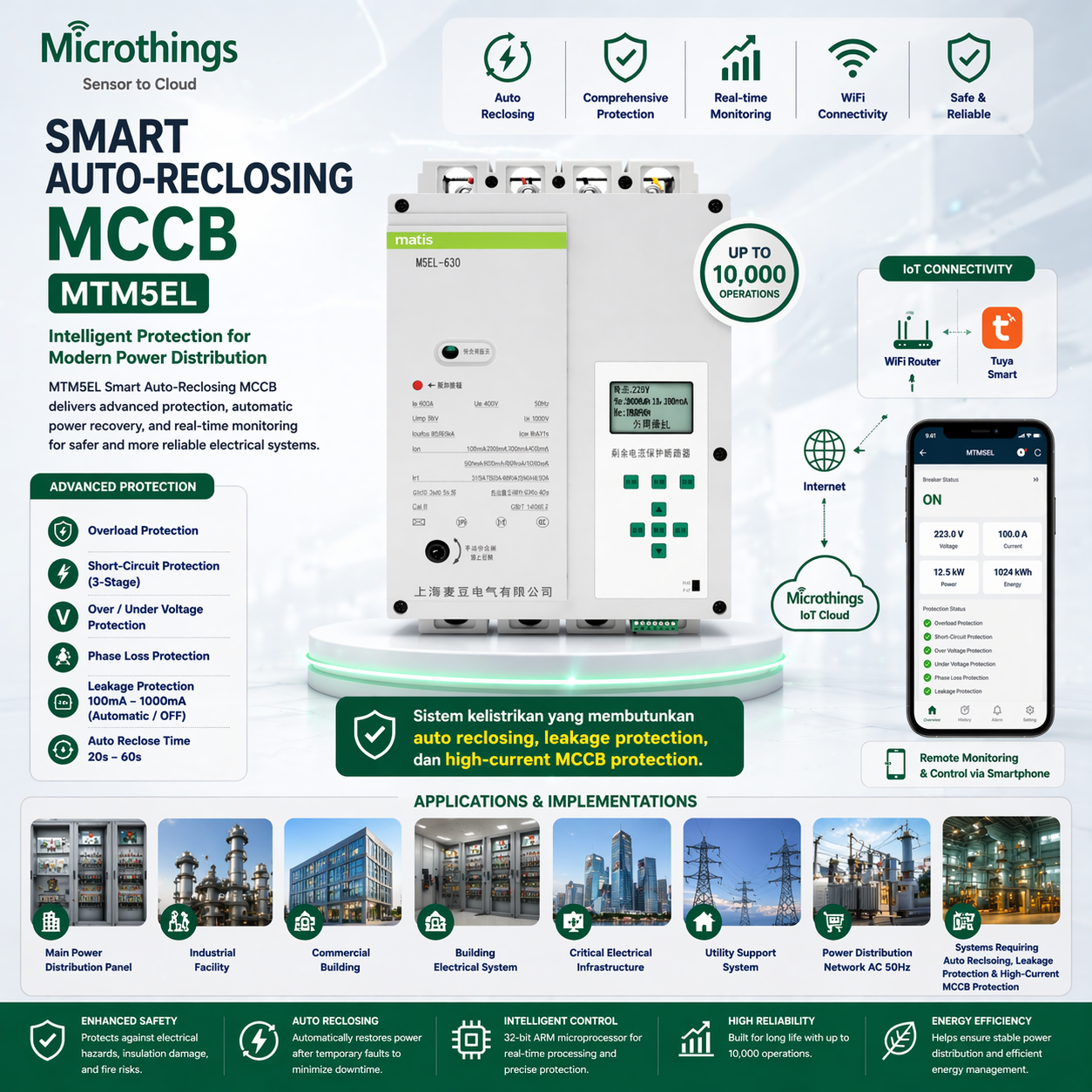 - Sistem kelistrikan yang membutuhkan auto reclosing, leakage protection, dan high-current MCCB protection