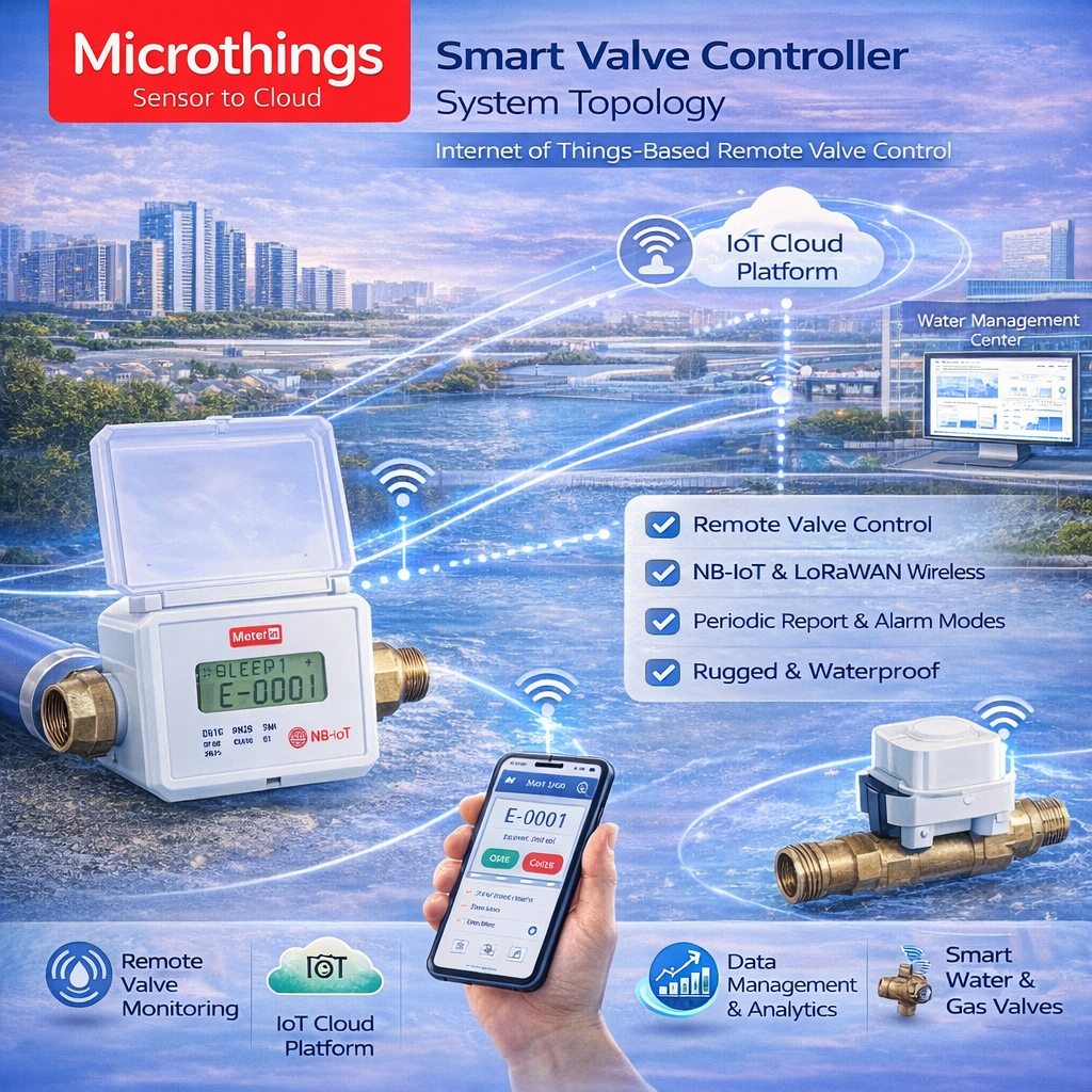 Smart Valve Controller adalah perangkat kontrol katup pintar untuk air dan gas yang dirancang untuk mendukung pengoperasian katup jarak jauh secara aman, efisien, dan real-time. Perangkat ini mengadopsi teknologi komunikasi nirkabel NB-IoT dan LoRaWAN untuk menghadirkan cakupan komunikasi yang luas, pemasangan yang mudah, serta integrasi yang praktis ke sistem utilitas modern.