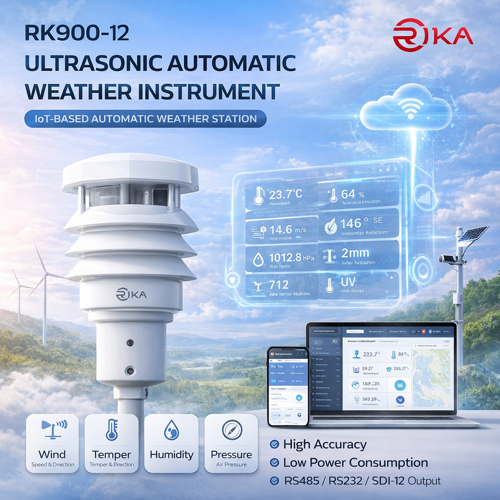 Ultrasonic Automatic Weather Instrument RK900-12 adalah sensor cuaca ultrasonik otomatis yang ringkas, hemat daya, dan akurat untuk monitoring meteorologi real-time di berbagai aplikasi industri, lingkungan, energi, dan pertanian.