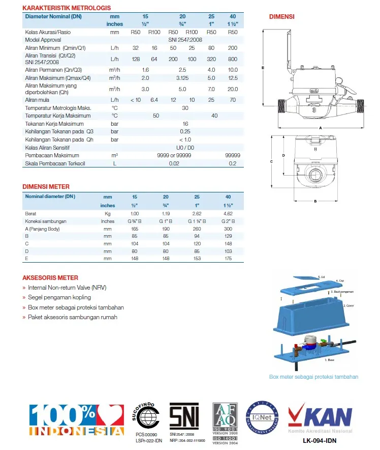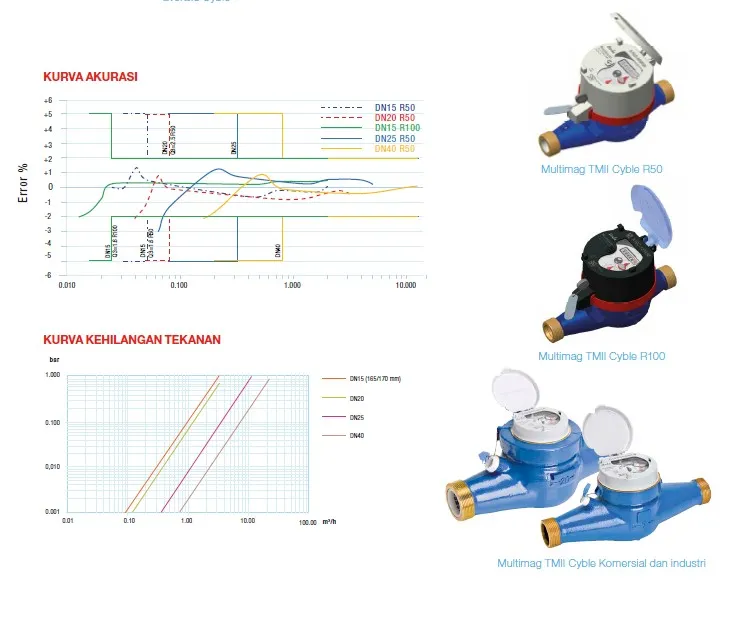 » Tersedia kelas akurasi R100 untuk ukuran 15mm yang lebih sensitif di aliran rendah.